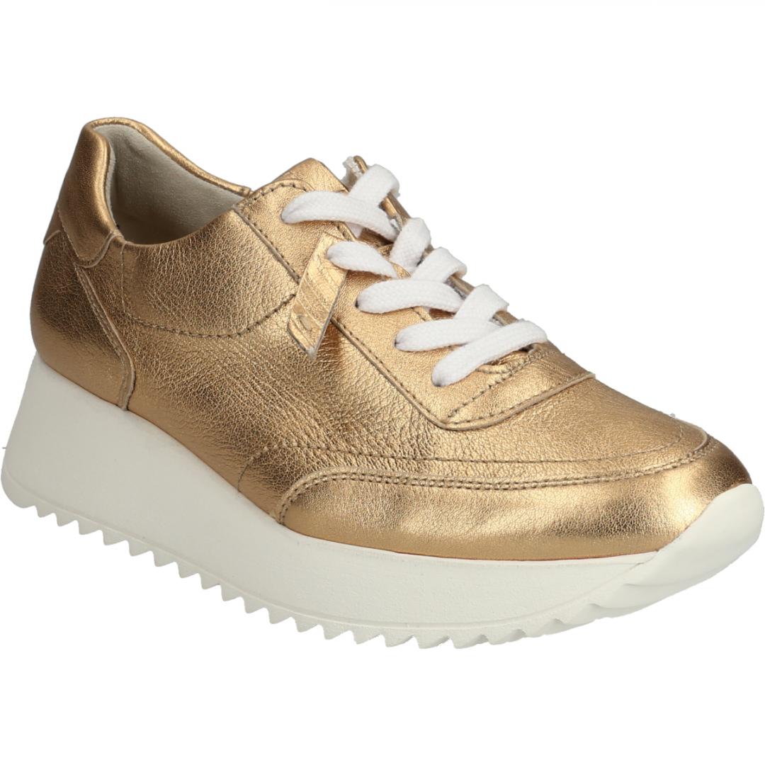 Mit diesen SUPER SOFTEN Sneakers von Paul Green verbreiten Sie Streetstyle-Flair! Das Modell begeistert mit weichem Metallicleder in Gold und breiter Plateau-Laufsohle, die dem Paar eine trendige Optik verleiht. Abgerundet wird das stilvolle Design durch weiße Senkel mit der Aufschrift "I feel good". Die super softe Verarbeitung aus Leder und Frottee sorgt für hervorragende Laufqualität. Ein vielfältiges Casual-Paar für alle Tage!Paul Green steht für Damenschuhe von höchster Qualität, gefertigt mit handwerklichem Können und Leidenschaft. Jeder unserer Schuhe wird von qualifizierten Schuhmachermeistern in bis zu 160 Arbeitsschritten hergestellt. Das Ergebnis ist Qualität, die man sieht und spürt. Obermaterial: Metallicleder Innenfutter: Leder & Frottee (80% Baumwolle & 20% Synthetik) Decksohle: Leder Sohle: EVA-Sohle (geringes Gewicht) Absatzhöhe: 15 mm Merkmale: Super Soft (speziell entwickelte Fersenkappe aus Leder), Plateausohle, Ziernähte, Lederapplikation, Logoprägung