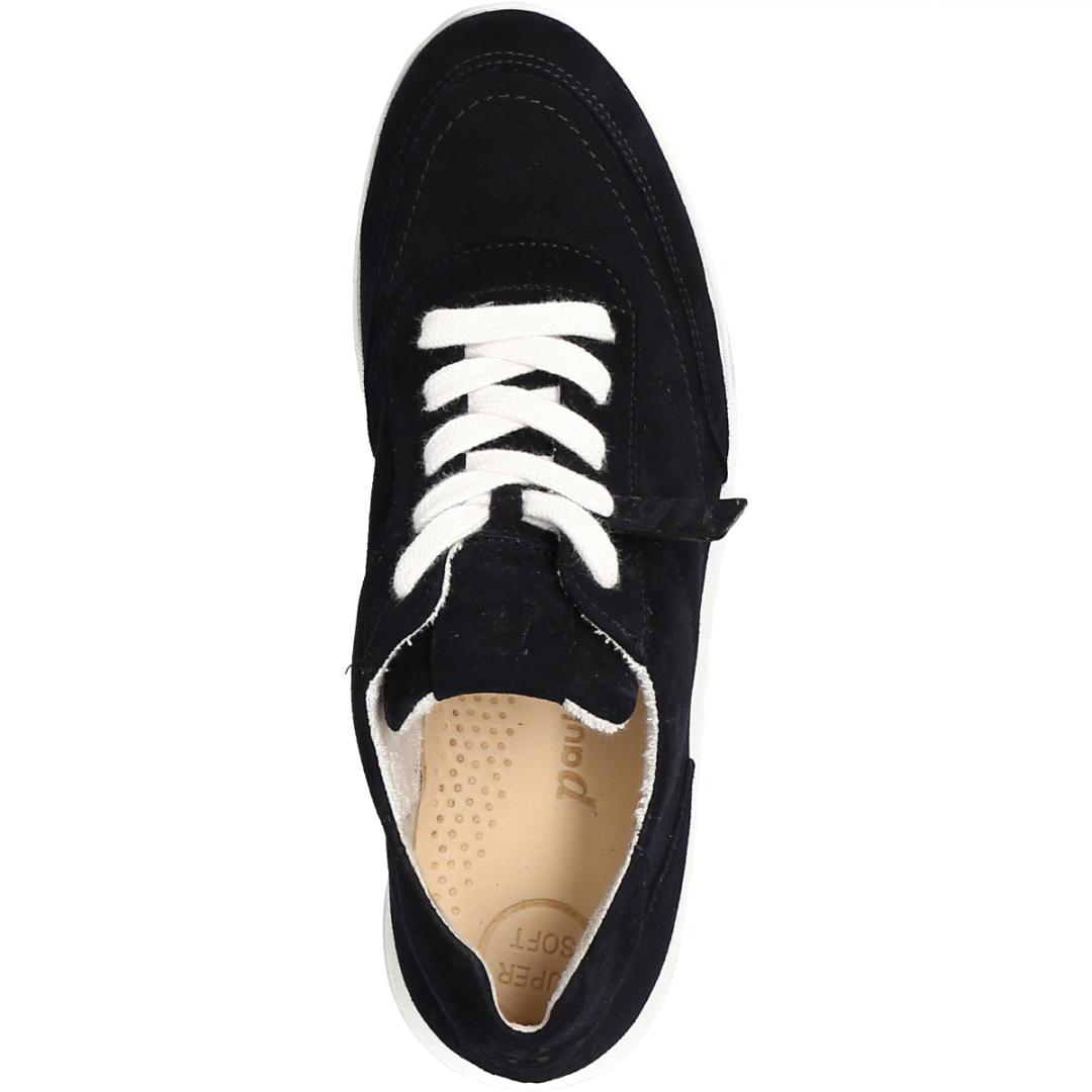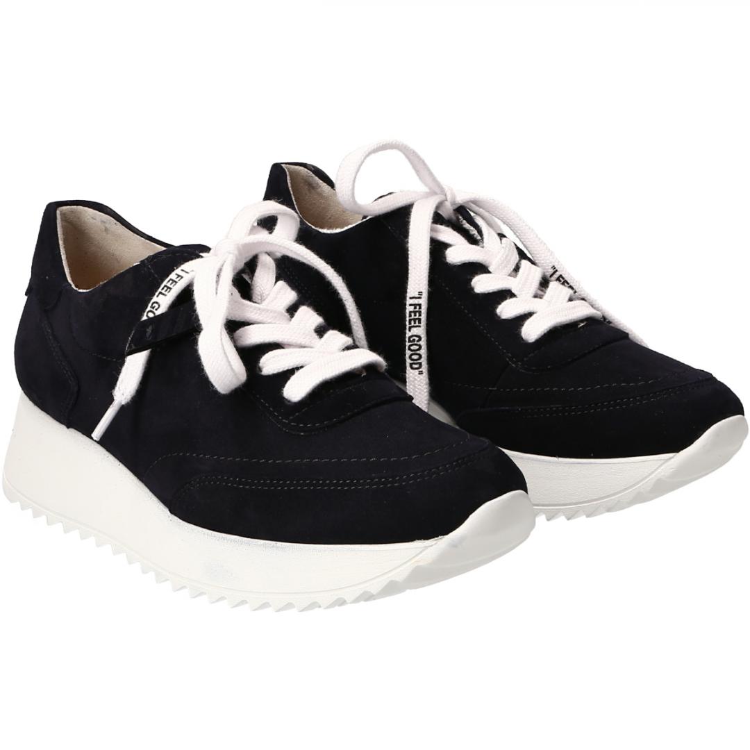 Mit diesen SUPER SOFTEN Sneakers von Paul Green verbreiten Sie Streetstyle-Flair! Das Modell begeistert mit weichem Samtleder in Dunkelblau und breiter Plateau-Laufsohle, die dem Paar eine trendige Optik verleiht. Abgerundet wird das stilvolle Design durch weiße Senkel mit der Aufschrift "I feel good". Die super softe Verarbeitung aus Leder und Frottee sorgt für hervorragende Laufqualität. Ein vielfältiges Casual-Paar für alle Tage!Paul Green steht für Damenschuhe von höchster Qualität, gefertigt mit handwerklichem Können und Leidenschaft. Jeder unserer Schuhe wird von qualifizierten Schuhmachermeistern in bis zu 160 Arbeitsschritten hergestellt. Das Ergebnis ist Qualität, die man sieht und spürt. Obermaterial: Samtleder Innenfutter: Leder & Frottee (80% Baumwolle & 20% Synthetik) Decksohle: Leder Sohle: EVA-Sohle (geringes Gewicht) Absatzhöhe: 15 mm Merkmale: Super Soft (speziell entwickelte Fersenkappe aus Leder), Logoprägung, Plateausohle